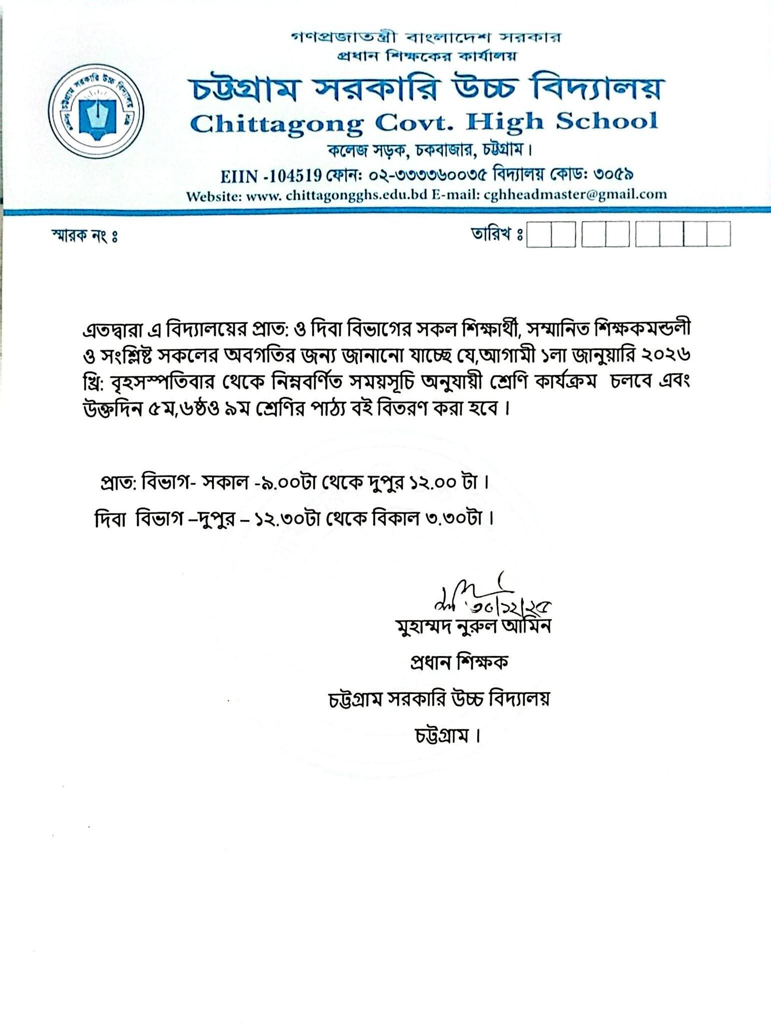 ২০২৬ শিক্ষাবর্ষের শ্রেণি কার্যক্রম ও বই বিতরণ সংক্রান্ত --