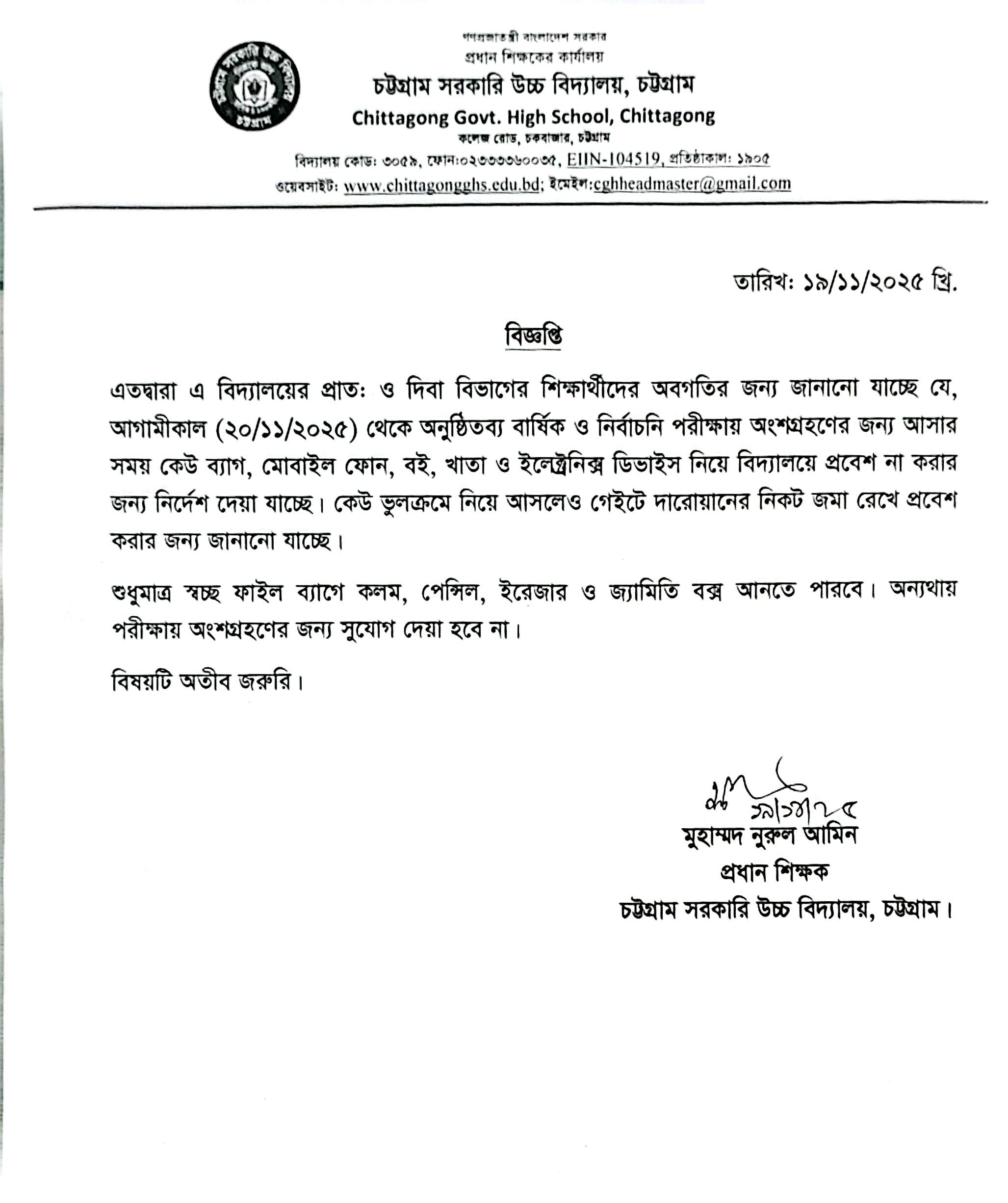 পরীক্ষা সংক্রান্ত বিজ্ঞপ্তি --